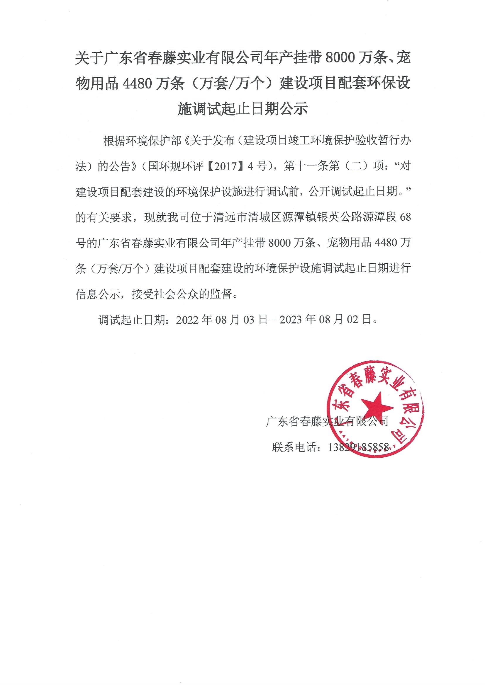 下一頁: 關(guān)于廣東省春藤實業(yè)有限公司年產(chǎn)掛帶8000萬條、寵物用品4480萬條(萬套/萬個)...